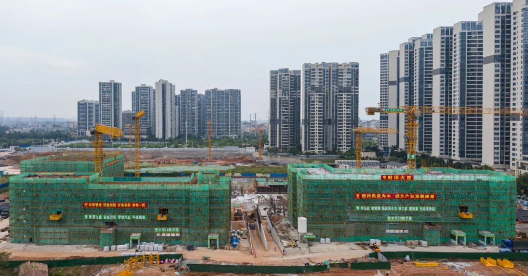 趣园中学和趣园小学各有一栋教学楼已封顶。